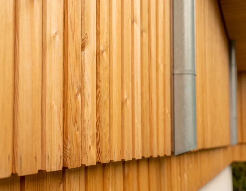 - Le mélèze, très résistant à l’humidité et au gel, idéal pour les façades exposées